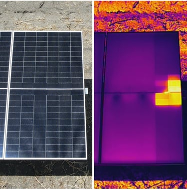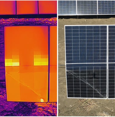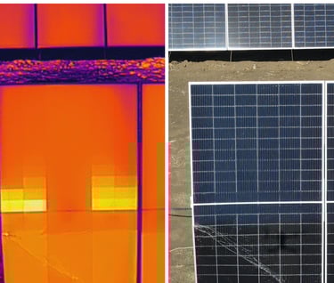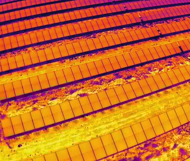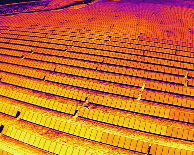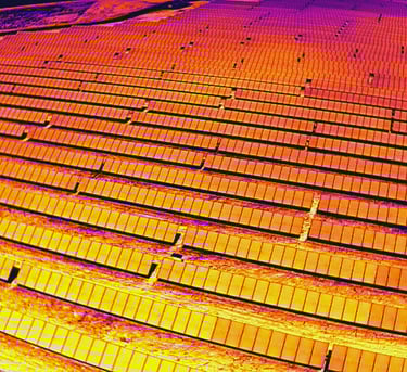 La termografía aérea efectuada con drones es una técnica que permite capturar imágenes térmicas de una zona determinada utilizando drones, los cuales se encargan de sobrevolar la zona y registrar las diferentes temperaturas que se presentan en la superficie. Esta técnica es muy útil en diferentes campos, como por ejemplo, en la revision de plantas fotovoltaicas(ganando en tiempo y eficiencia),en la detección de fugas de calor en edificios, la identificación de animales en zonas de difícil acceso, en la agricultura para analizar la salud de los cultivos o en la prevención de incendios forestales. Además, esta técnica permite ahorrar tiempo y dinero en comparación con otros métodos de medición, ya que se puede cubrir una gran extensión de terreno en poco tiempo y sin la necesidad de desplazarse físicamente al lugar de interés.